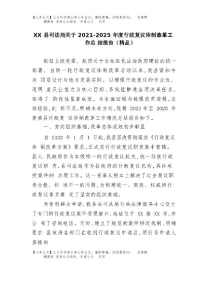 【七哥公文】2025年:XX县司法局关于2021-2025年度行政复议体制改革工作总结报告(精品)+更多免费公文+VX:QiGeGongWen2024