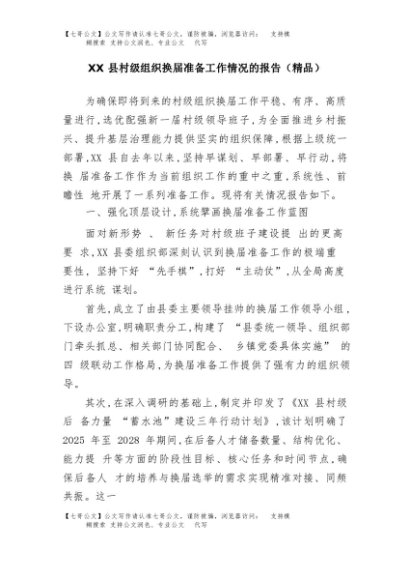 / 【七哥公文】2025年:XX县村级组织换届准备工作情况的报告(精品)+更多免费公文+VX:QiGeGongWen2024