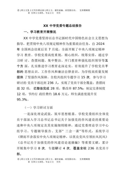 / 【七哥公文】2025年:XX中学党委专题总结报告+更多免费公文+VX:QiGeGongWen2024