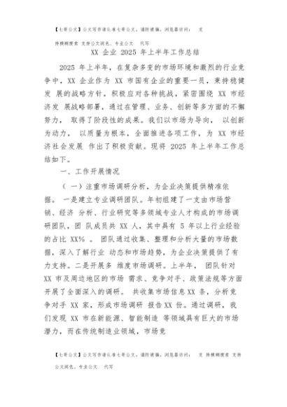 / 【七哥公文】2025年:XX企业2025年上半年工作总结+更多免费公文+VX:QiGeGongWen2024