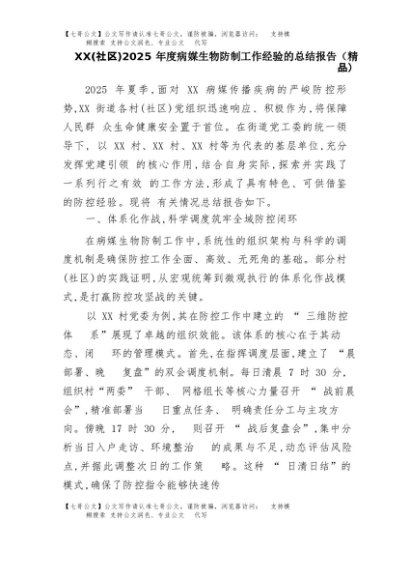 【七哥公文】2025年:XX(社区)2025年度病媒生物防制工作经验的总结报告(精品)+更多免费公文+VX:QiGeGongWen2024