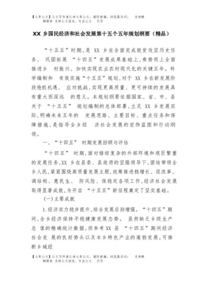 【七哥公文】2025年:XX乡国民经济和社会发展第十五个五年规划纲要(精品)+更多免费公文+VX:QiGeGongWen2024