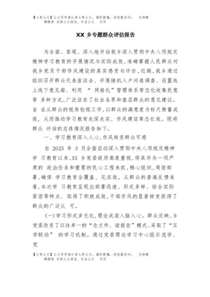 【七哥公文】2025年:XX乡专题群众评估报告+更多免费公文+VX:QiGeGongWen2024