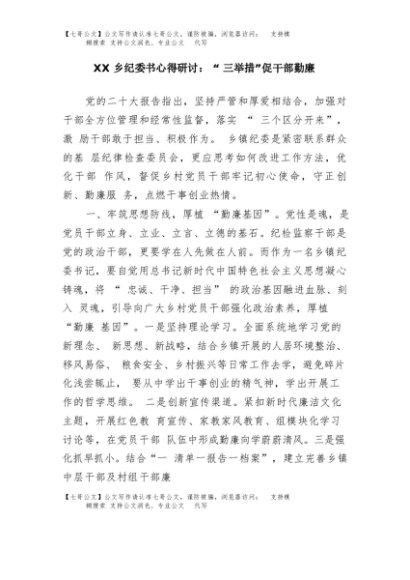 / 【七哥公文】2025年:XX乡纪委书心得研讨:“三举措”促干部勤廉+更多免费公文+VX:QiGeGongWen2024