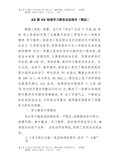/ 【七哥公文】2025年:XX区XX街道学习教育总结报告(精品)+更多免费公文+VX:QiGeGongWen2024