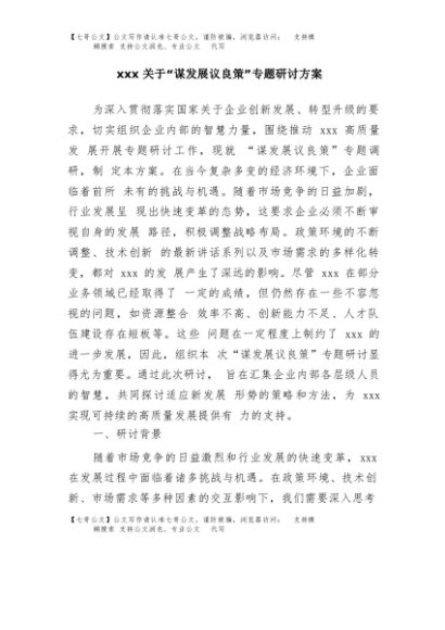 / 【七哥公文】2025年:xxx关于“谋发展议良策”专题研讨方案+更多免费公文+VX:QiGeGongWen2024