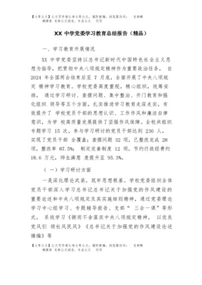 / 【七哥公文】2025年:XX中学党委学习教育总结报告(精品)+更多免费公文+VX:QiGeGongWen2024