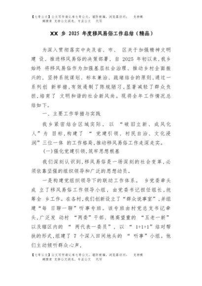 / 【七哥公文】2025年:XX乡2025年度移风易俗工作总结(精品)+更多免费公文+VX:QiGeGongWen2024