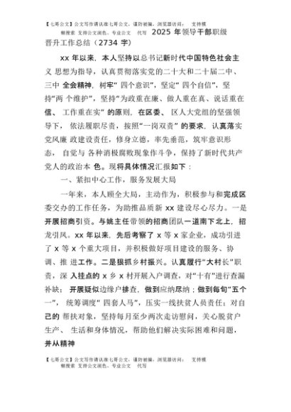 【七哥公文】2025年:2025年领导干部职级晋升工作总结(2734字)+更多免费公文+VX:QiGeGongWen2024