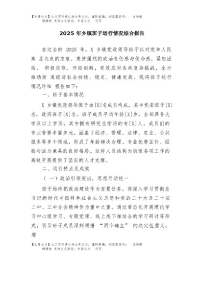 / 【七哥公文】2025年:2025年乡镇班子运行情况综合报告+更多免费公文+VX:QiGeGongWen2024