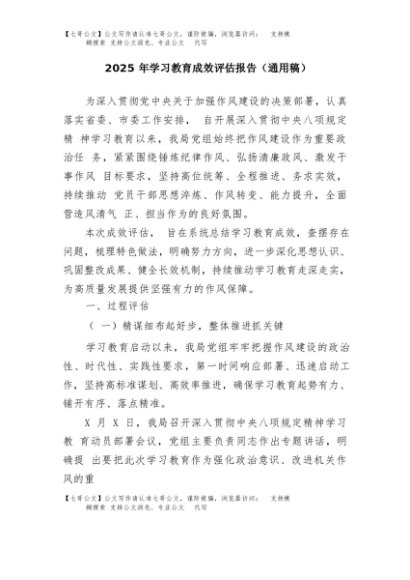/ 【七哥公文】2025年:2025年学习教育成效评估报告(通用稿)+更多免费公文+VX:QiGeGongWen2024