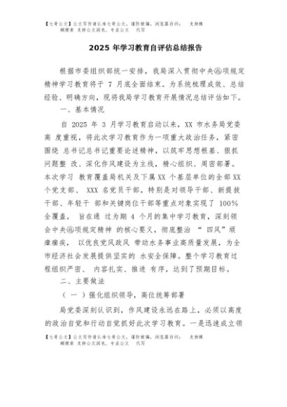 / 【七哥公文】2025年:2025年学习教育自评估总结报告+更多免费公文+VX:QiGeGongWen2024