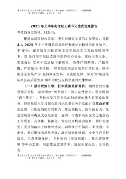 / 【七哥公文】2025年:2025年上半年街道纪工委书记述责述廉报告+更多免费公文+VX:QiGeGongWen2024