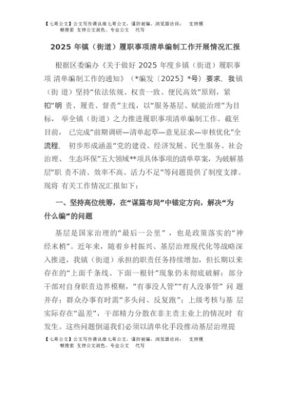 【七哥公文】2025年:2025年镇(街道)履职事项清单编制工作开展情况汇报+更多免费公文+VX:QiGeGongWen2024