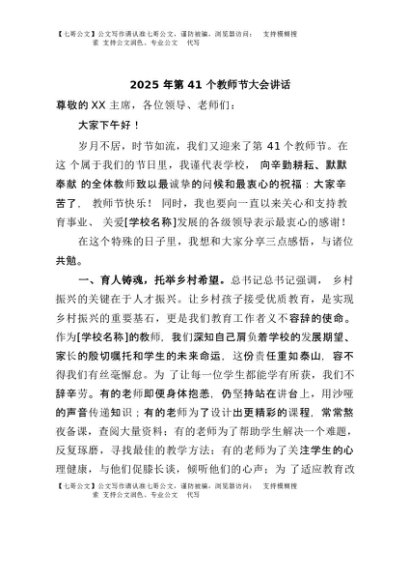 / 【七哥公文】2025年:2025年第41个教师节大会讲话+更多免费公文+VX:QiGeGongWen2024