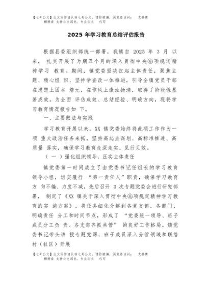 / 【七哥公文】2025年:2025年学习教育总结评估报告+更多免费公文+VX:QiGeGongWen2024