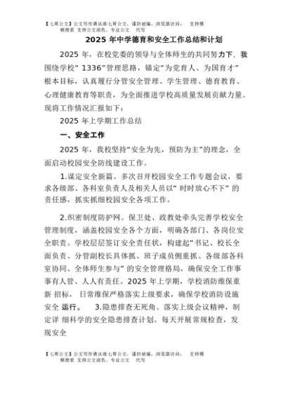 / 【七哥公文】2025年:2025年中学德育和安全工作总结和计划+更多免费公文+VX:QiGeGongWen2024