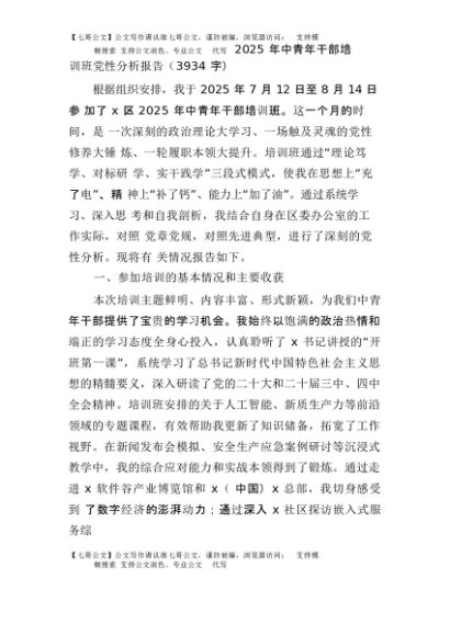 【七哥公文】2025年:2025年中青年干部培训班党性分析报告(3934字)+更多免费公文+VX:QiGeGongWen2024