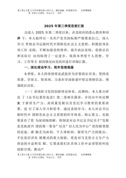 / 【七哥公文】2025年:2025年第三季度思想汇报+更多免费公文+VX:QiGeGongWen2024