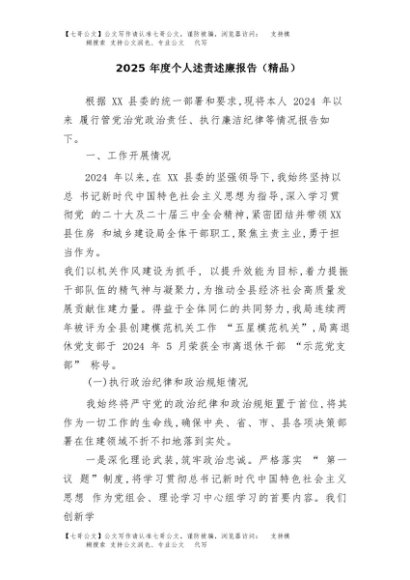 / 【七哥公文】2025年:2025年度个人述责述廉报告(精品)+更多免费公文+VX:QiGeGongWen2024
