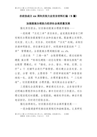 / 【七哥公文】2025年:(5篇)在政协成立xx周年庆祝大会发言材料汇编+更多免费公文+VX:QiGeGongWen2024