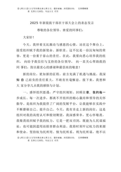 / 【七哥公文】2025年:2025年新提拔干部在干部大会上的表态发言+更多免费公文+VX:QiGeGongWen2024