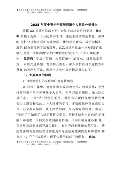 / 【七哥公文】2025年:2025年度中青年干部培训班个人党性分析报告+更多免费公文+VX:QiGeGongWen2024