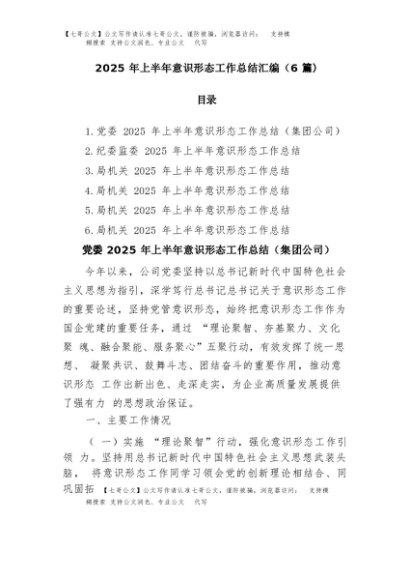 / 【七哥公文】2025年:(6篇)2025年上半年意识形态工作总结汇编+更多免费公文+VX:QiGeGongWen2024