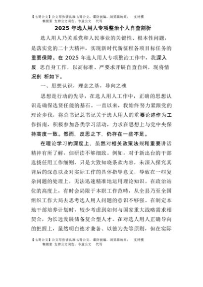 / 【七哥公文】2025年:2025年选人用人专项整治个人自查剖析+更多免费公文+VX:QiGeGongWen2024