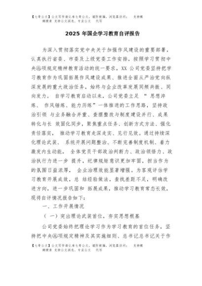 / 【七哥公文】2025年:2025年国企学习教育自评报告+更多免费公文+VX:QiGeGongWen2024