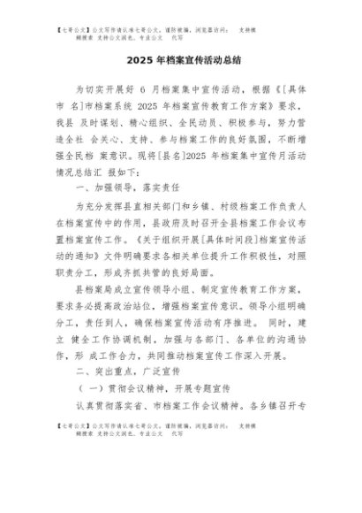 / 【七哥公文】2025年:2025年档案宣传活动总结+更多免费公文+VX:QiGeGongWen2024