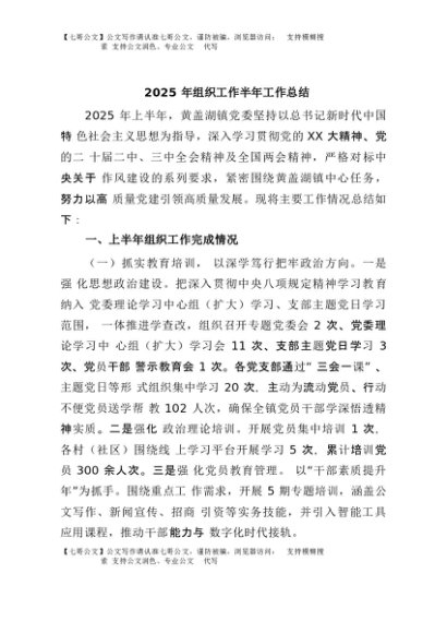 / 【七哥公文】2025年:2025年组织工作半年工作总结+更多免费公文+VX:QiGeGongWen2024