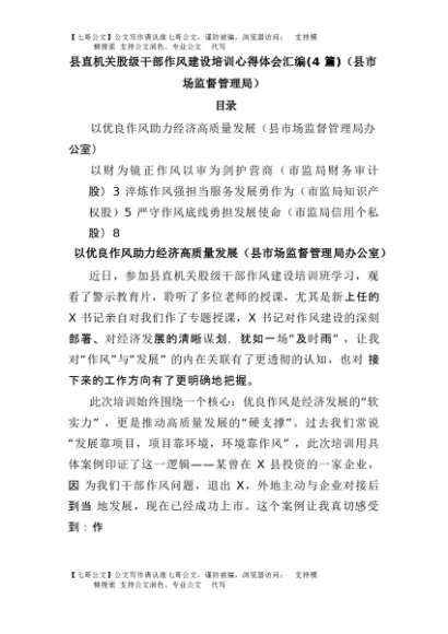 【七哥公文】2025年:(4篇)县直机关股级干部作风建设培训心得体会汇编(县市场监督管理局)+更多免费公文+VX:QiGeGongWen2024