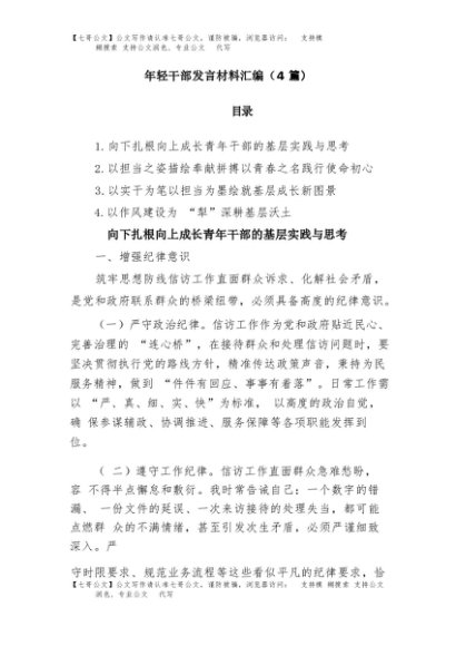 / 【七哥公文】2025年:(4篇)年轻干部发言材料汇编+更多免费公文+VX:QiGeGongWen2024