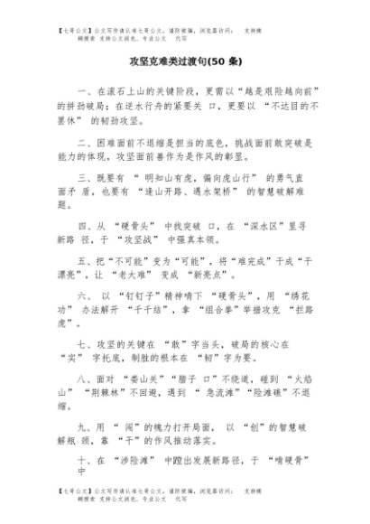 / 【七哥公文】2025年:(50条)攻坚克难类过渡句+更多免费公文+VX:QiGeGongWen2024