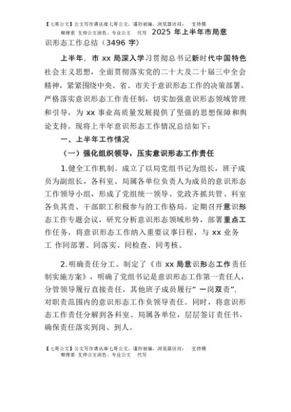 【七哥公文】2025年:2025年上半年市局意识形态工作总结(3496字)+更多免费公文+VX:QiGeGongWen2024