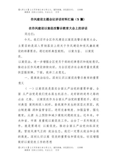 / 【七哥公文】2025年:(5篇)作风建设主题会议讲话材料汇编+更多免费公文+VX:QiGeGongWen2024
