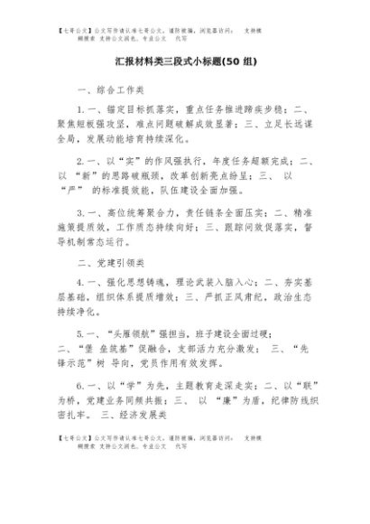 / 【七哥公文】2025年:(50组)汇报材料类三段式小标题+更多免费公文+VX:QiGeGongWen2024