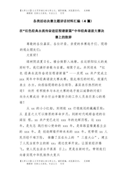 / 【七哥公文】2025年:(4篇)各类活动决赛主题讲话材料汇编+更多免费公文+VX:QiGeGongWen2024