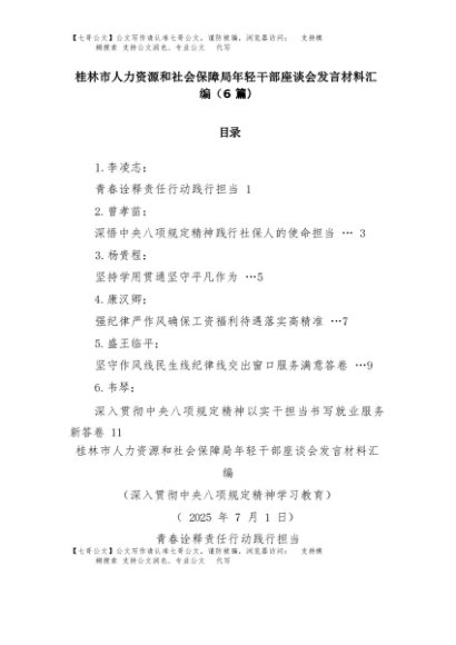 【七哥公文】2025年:(6篇)桂林市人力资源和社会保障局年轻干部座谈会发言材料汇编+更多免费公文+VX:QiGeGongWen2024