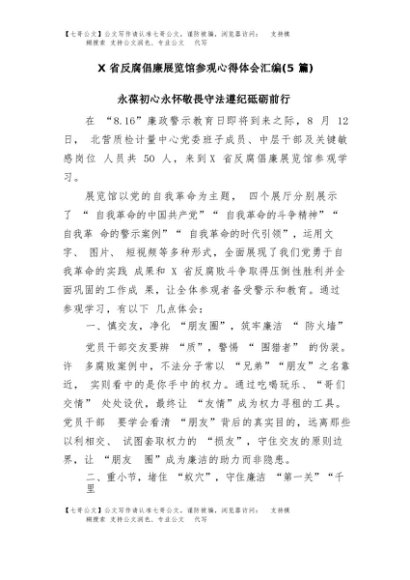 / 【七哥公文】2025年:(5篇)X省反腐倡廉展览馆参观心得体会汇编+更多免费公文+VX:QiGeGongWen2024