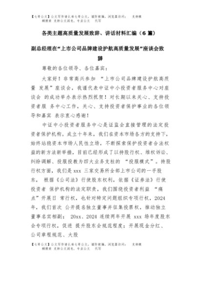 / 【七哥公文】2025年:(6篇)各类主题高质量发展致辞、讲话材料汇编+更多免费公文+VX:QiGeGongWen2024