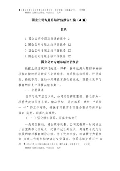 / 【七哥公文】2025年:(4篇)国企公司专题总结评估报告汇编+更多免费公文+VX:QiGeGongWen2024
