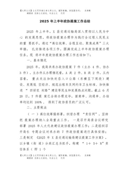 / 【七哥公文】2025年:2025年上半年政协提案工作总结+更多免费公文+VX:QiGeGongWen2024