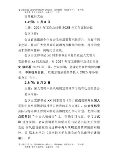 / 【七哥公文】2025年:2025年1-3月支部手册模版+更多免费公文+VX:QiGeGongWen2024