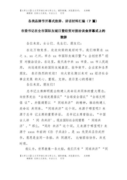 / 【七哥公文】2025年:(7篇)各类品牌节开幕式致辞、讲话材料汇编+更多免费公文+VX:QiGeGongWen2024