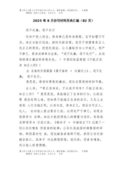 【七哥公文】2025年:2025年8月份写材料用典汇编(82页)+更多免费公文+VX:QiGeGongWen2024