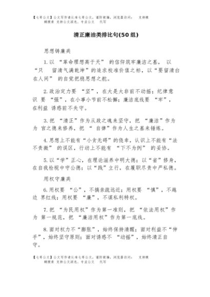 / 【七哥公文】2025年:(50组)清正廉洁类排比句+更多免费公文+VX:QiGeGongWen2024