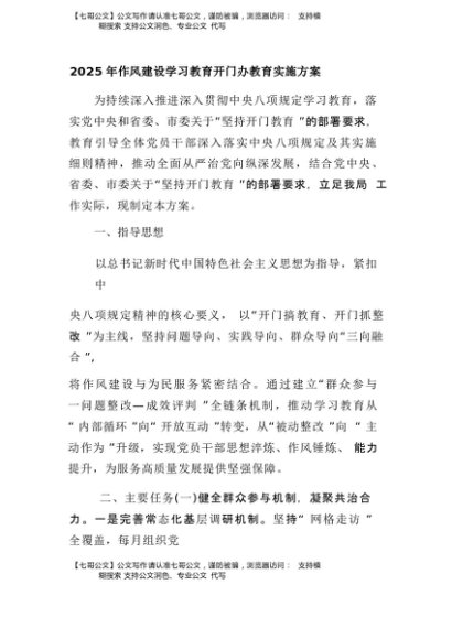 / 【七哥公文】2025年:2025年作风建设学习教育开门办教育实施方案+更多免费公文+VX:QiGeGongWen2024