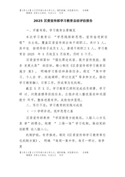 / 【七哥公文】2025年:2025区委宣传部学习教育总结评估报告+更多免费公文+VX:QiGeGongWen2024